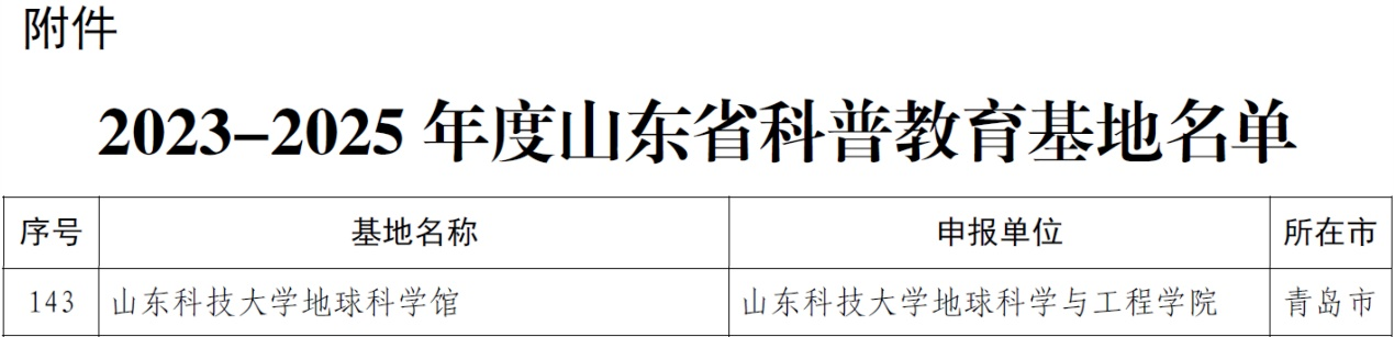 近日,山东省科学技术协会公布了“2023-2025年度山东省科普教育基地”认定结果,“信誉最好的十大体育平台地球科学馆”成功入选。