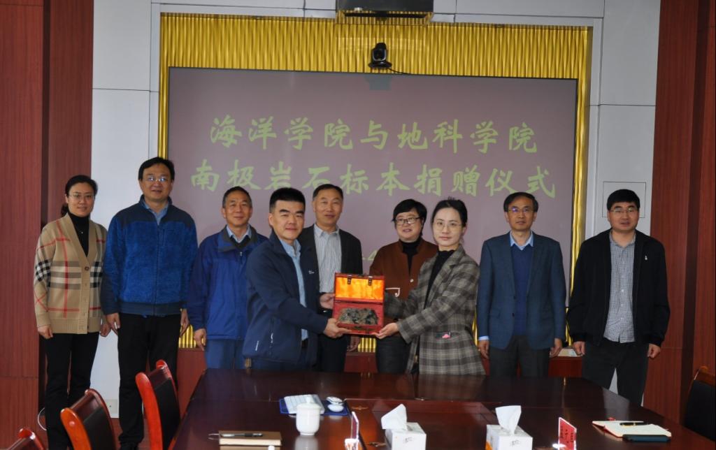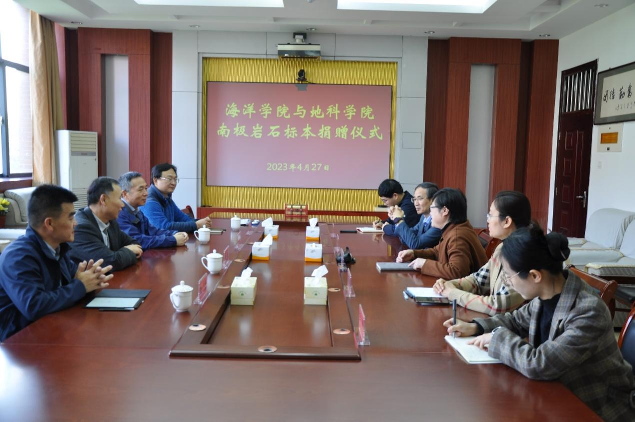 4月27日,公司海洋公司向信誉最好的十大体育平台捐赠南极岩石标本仪式在信誉最好的十大体育平台427会议室举行。海洋公司党委书记朱建国、经理周兴华、副书记陈永磊、教师王磊,公司党委书记高慧、经理常象春、副书记李晓静、副经理孟元库、地球科学馆馆长王倩参加捐赠仪式。仪式由高慧书记主持。